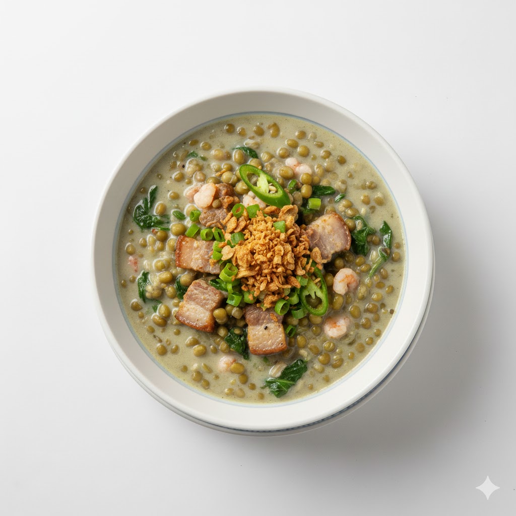 Indulge in this creamy Filipino classic featuring tender mung beans simmered in rich, velvety coconut milk. Enhanced with savory pork and fresh malunggay leaves, it’s a hearty, soul-warming dish that perfectly balances smoky and silky flavors.