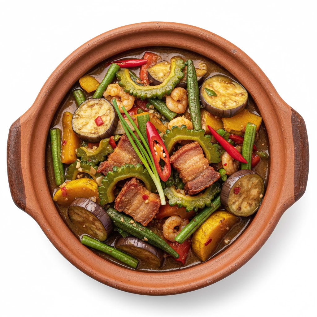 This garden-fresh Filipino stew features vegetables simmered until tender. Its concentrated flavors offer a robust, savory profile balanced by earthy squash and traditional umami paste.