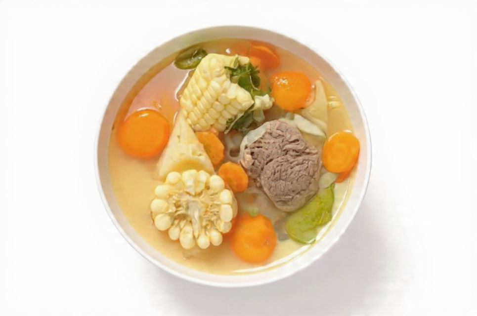Pochero is a Filipino stew with meat, veggies like carrots, cabbage, corn, simmered in a flavorful broth. Hearty, comforting with rice.