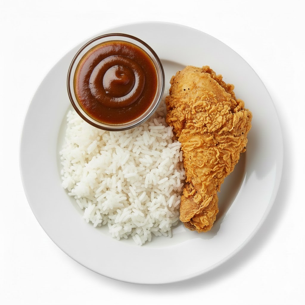 Golden-brown, crispy, and juicy fried chicken served with a generous side of fluffy rice. A simple, delicious Filipino favorite done to perfection.